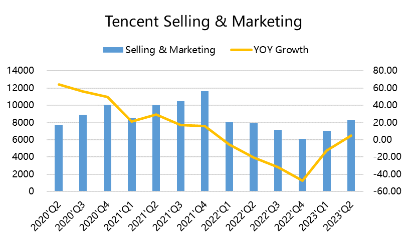 Without considering these external factors and only looking at Tencent's own operational efficiency, administrative expenses continued to decrease by 3% in Q2, but marketing expenses increased by 4.8%, and research and development expenses increased by 6.7%. It can be said that cost reduction and efficiency enhancement have been achieved.