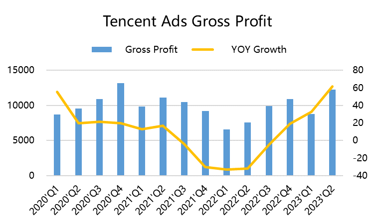 In Q2, the advertising business shone with a year-on-year growth of 34% and a quarter-on-quarter growth of 19%. The gross profit margin also rebounded to 48%. This growth rate and operational efficiency are both ahead of the industry average, indicating that Tencent's advertising efficiency has been upgraded and has gained recognition from advertisers.