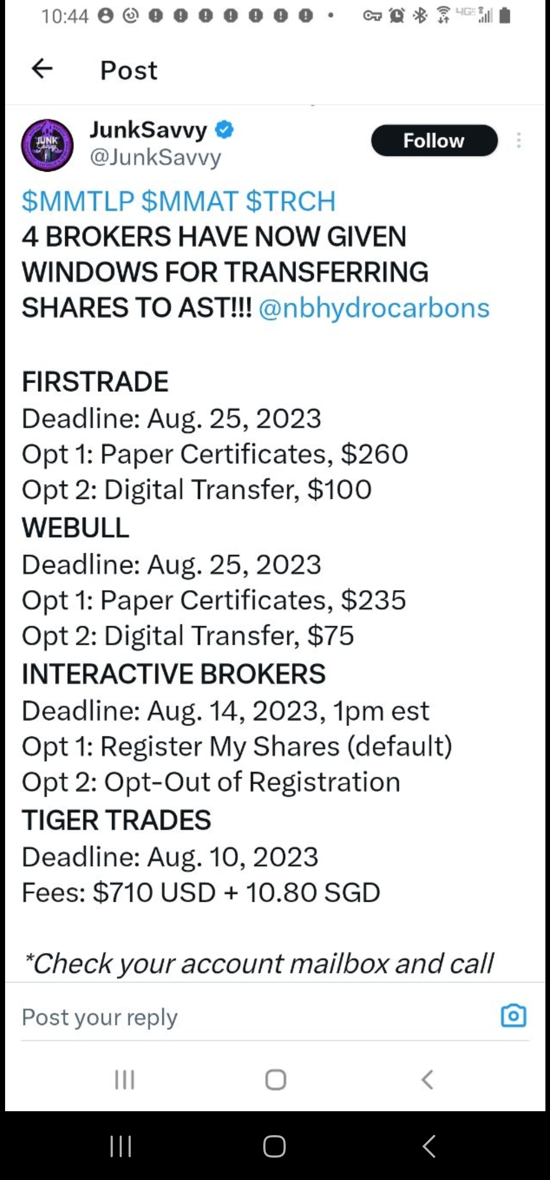 $NXBR(NXBR)$ they just sent email new email to transfer to ast. Reduced fee to 358 usd. They send the email at 11.38 am today. Deadline in email is today 12 noon. Wat the hell sia. Kok. There are brokers who transfer for free or minimal fee.