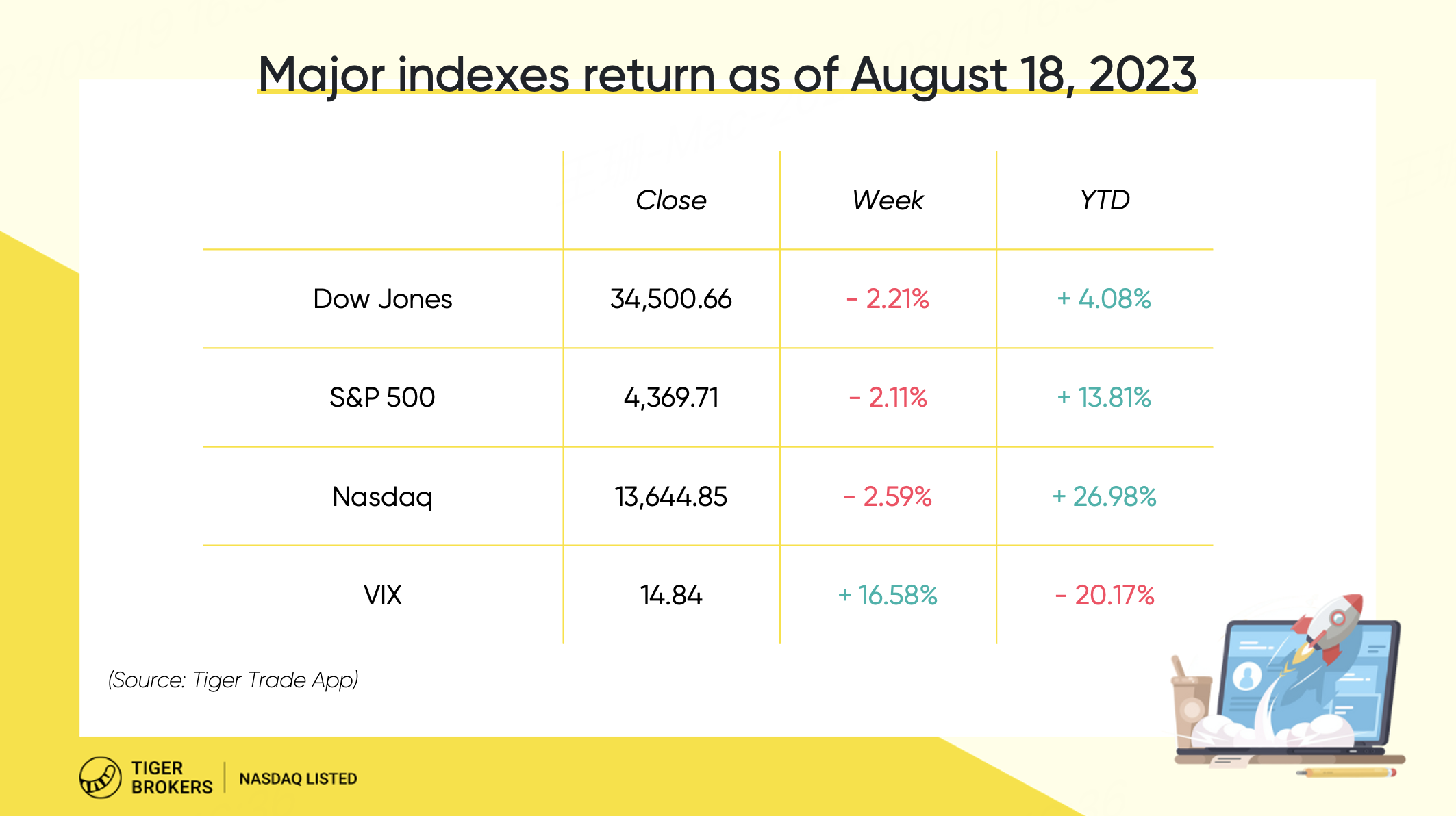 • The S&P 500 and the Nasdaq fell 2.1% and 2.6%, respectively, last week. Both of them registered a third straight week of losses. Meanwhile, the Dow ended the week lower by 2.2%, its worst since March.