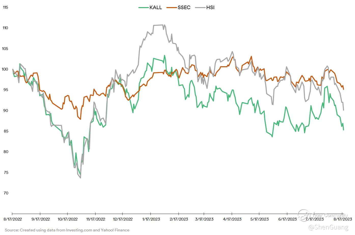 Let's also consider another instrument that has been gaining popularity in recent times to gauge market performance over the past one year: the KraneShares MSCI All China Index ETF ( $KraneShares MSCI China All Shares Index ETF(KALL)$). Tracking the MSCI China All Shares Index, this fund offers exposures to A-Shares, B-Shares and Hong Kong-listed "H-Shares".