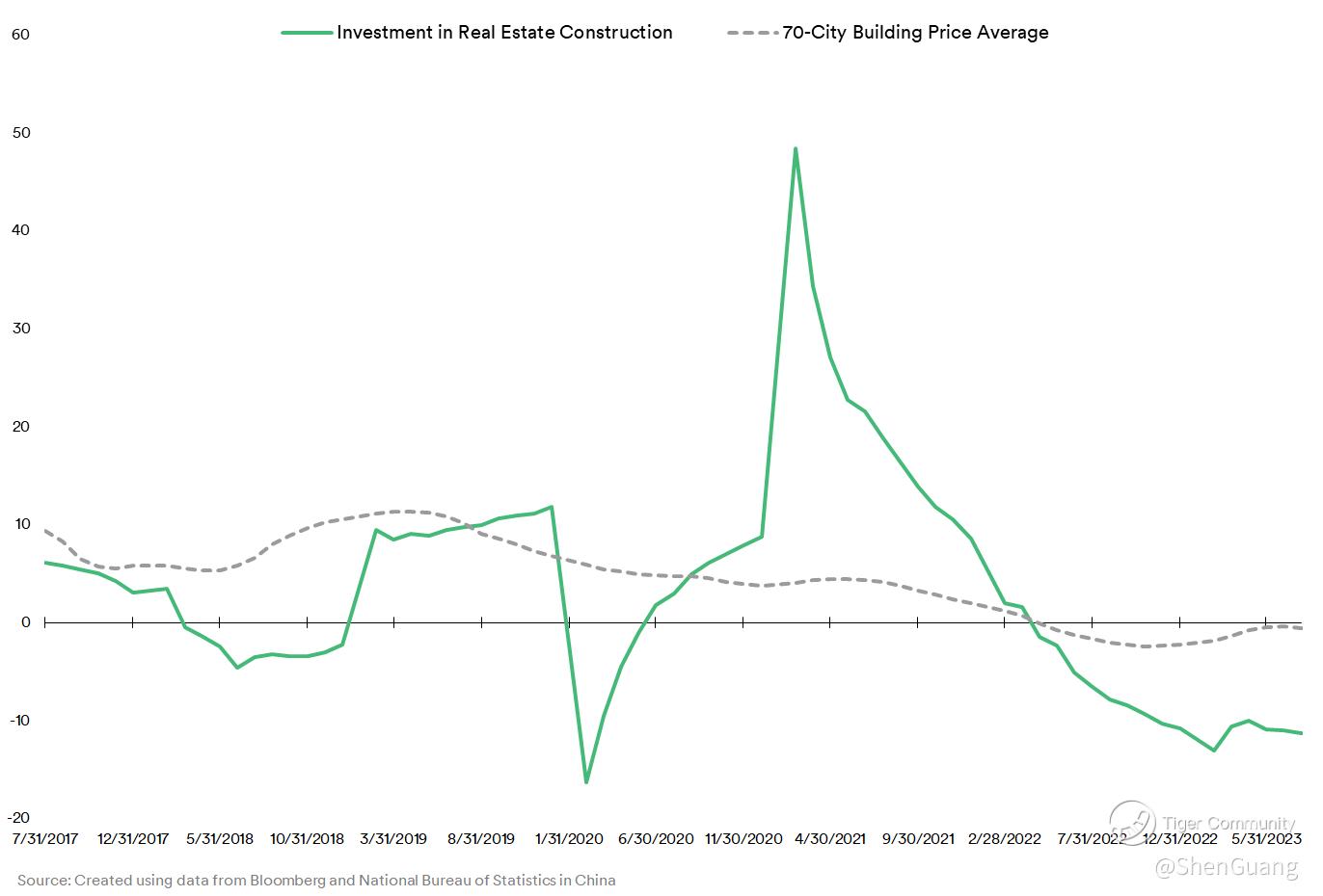 This assumption has long been found to be wanting. Let us consider a second-order trend analysis, i.e. a trend of trends, to demonstrate. An analysis of "China Property Investment in Real Estate Construction YoY" versus "China 70 Cities Newly Built Commercial and Residential Buildings Prices Average YoY" metrics over the past six years indicate how disparate this assumption is from reality.
