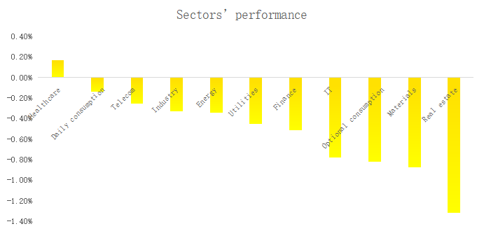In terms of sectors, real estate is still at the bottom, and the rest of the sectors have fallen more and risen less: