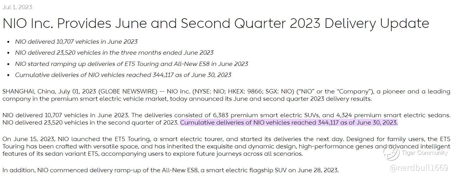 NIO will be able to beat its EPS estimate as we have seen cumulative deliveries of NIO vehicles reached 344,117 as of June 30, 2023.