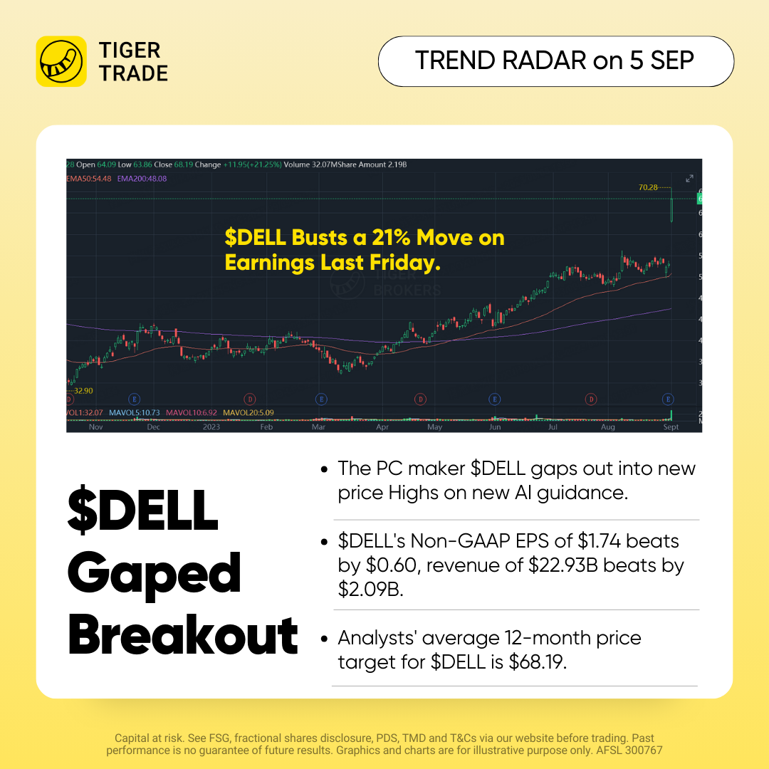 1. $Dell Technologies Inc.(DELL)$ Busts a 21% Move on Earnings Last Friday.