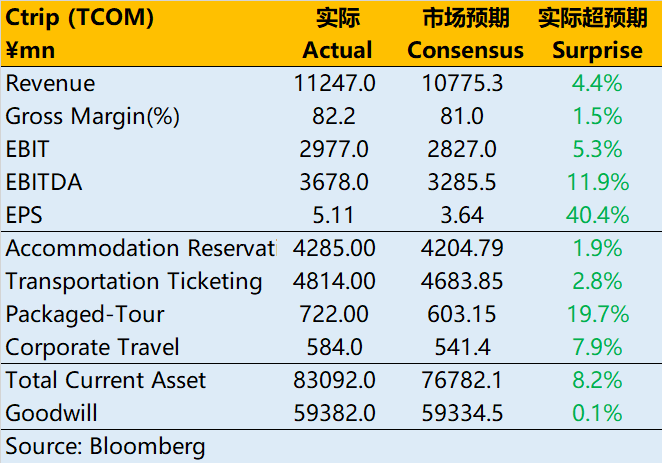 Among these figures, accommodation booking revenue increased by 216% year-on-year to 4.29 billion yuan, slightly higher than analysts' expectations of 4.2 billion yuan.