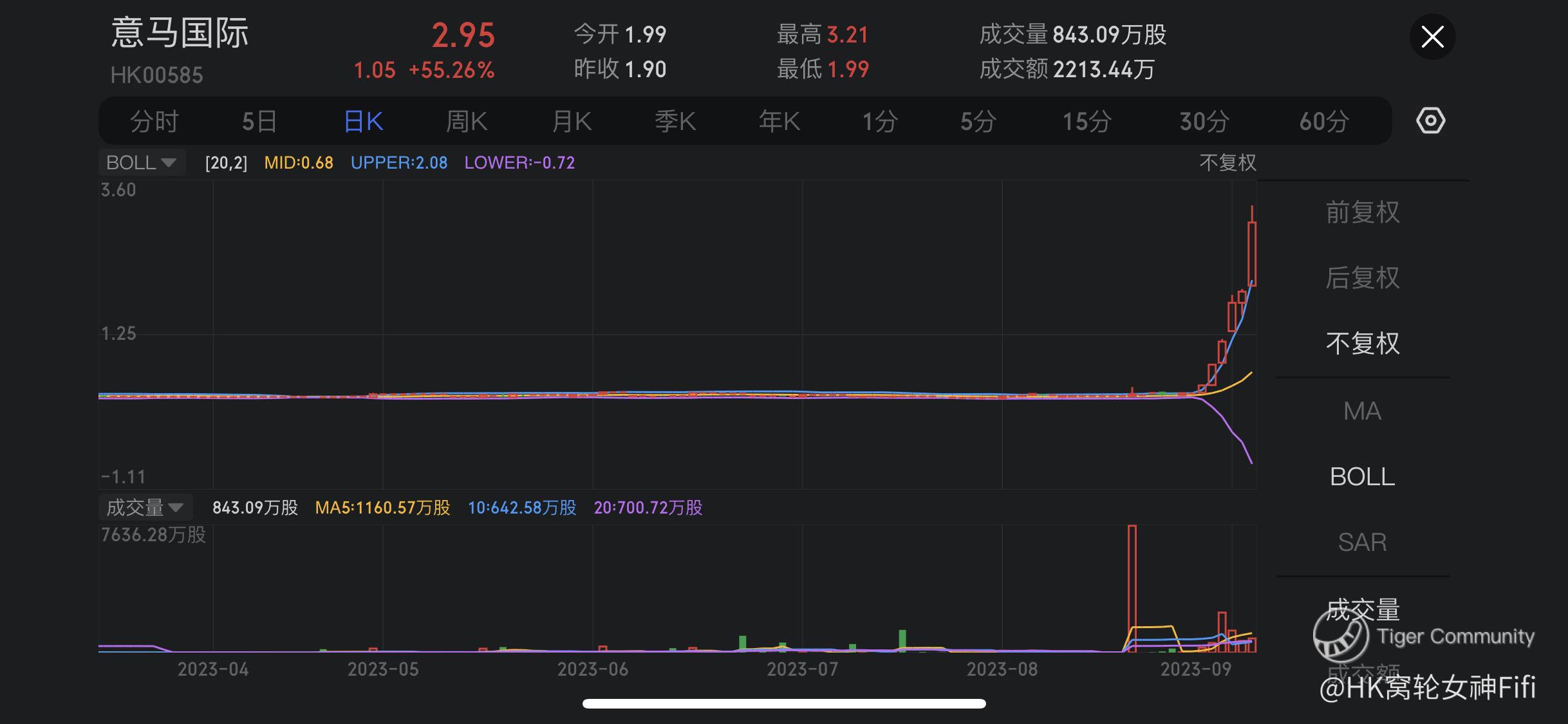 意馬國際(00585)近期的股價漲勢異常強烈,累計漲幅已超過700%。這樣的漲幅對於任何股票都是相當罕見的,尤其是考慮到其在8月18日的股東蔡霖智清倉式減持。