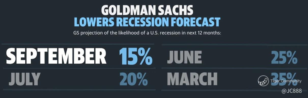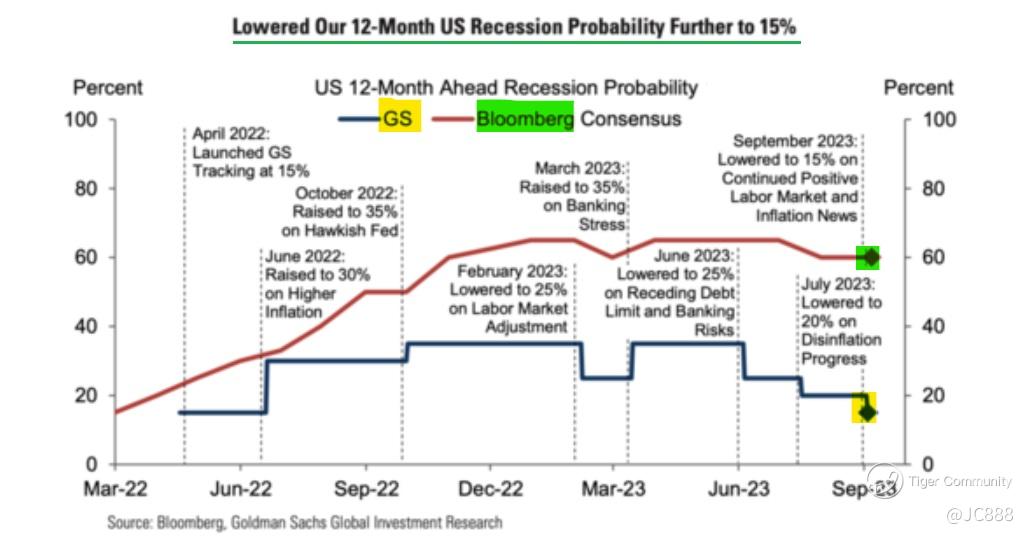 Rightfully, the market should have been buoyant, given that for the third time in as many months $Goldman Sachs(GS)$ has reduced the probability of US economy slipping into a recession come 2024. (see below).
