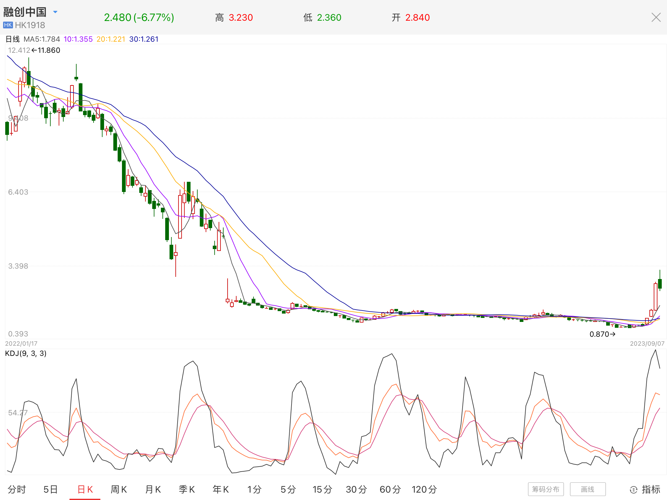 Sunac's stock price entered an upward trend starting from September 4th. Prior to this, favorable policies related to the real estate market were being rolled out vigorously. [Happy]
