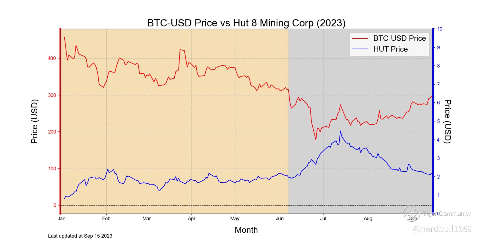 Hut seem to be the least among the 3 stocks to follow Bitcoin price movement, this could be due to the number of bitcoins they have in their reserves.