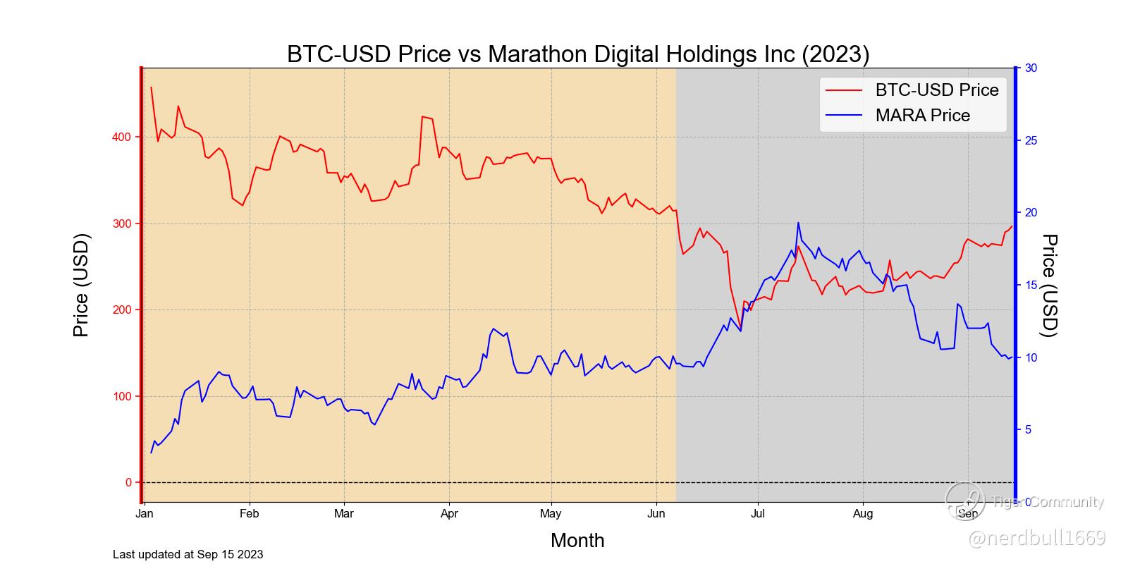 Marathon prices does not seem to follow the price pattern of Bitcoin after June 2023, this might be due to the way they are managing their reserves.