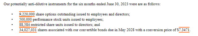 As of the latest financial report, the 34 million in shares associated with the convertible bonds were considered anti-dilutive: