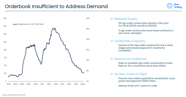 This is clearly very bullish for BORR, especially as the company has a modern fleet (average age of six years) that is in even higher demand compared to older rigs: