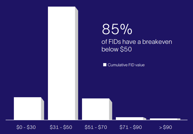 In contrast, industry bellwether Schlumberger (SLB) now believes that 85% of the offshore FIDs have a breakeven below $50: