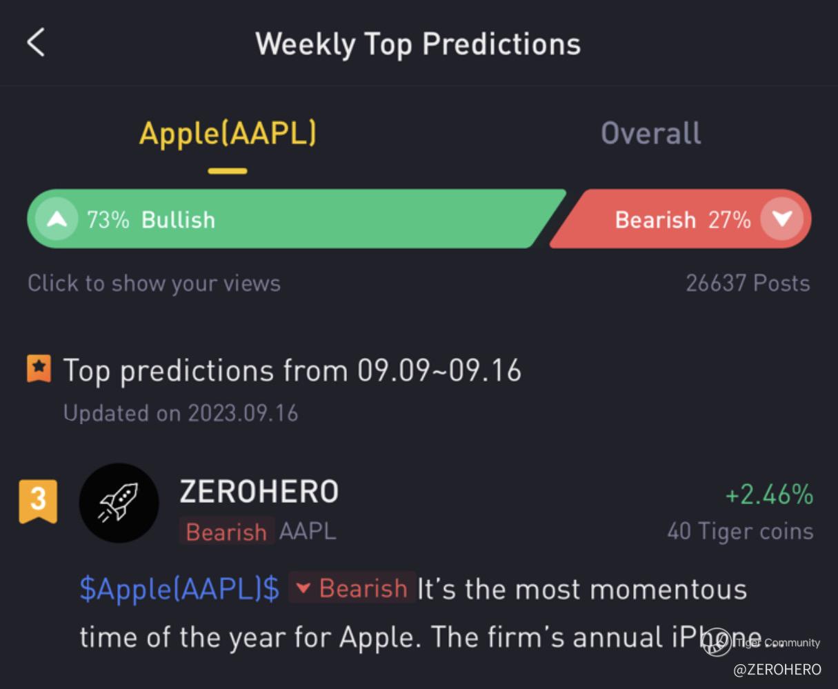Thanks to Tiger for awarding the weekly top predictions for AAPL. The fruit stock has proved to be the poor performer of the week after the Wonderlust event. An opportunity ahead for dip buyers should SPY hold and bounce off 443 next Monday and follow by FOMC announcement.