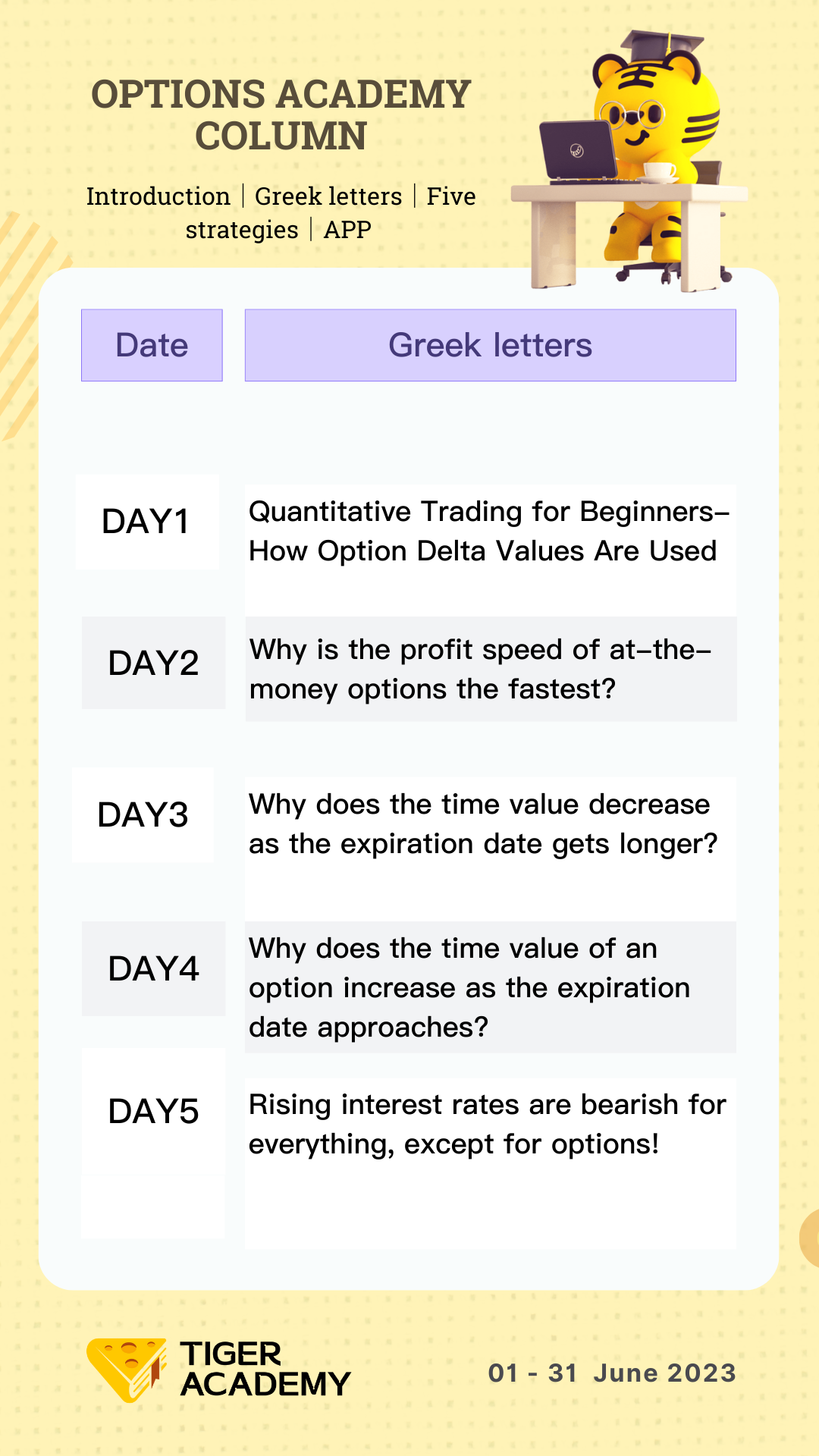 Welcome to Tiger Academy - 「Options Greeks Column」episode 1.