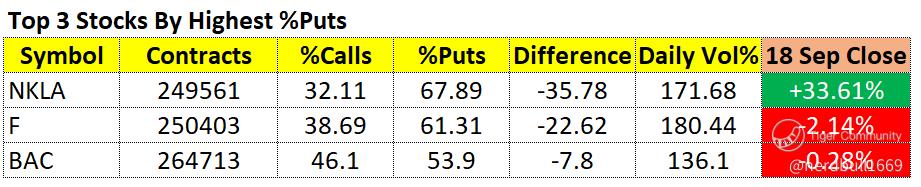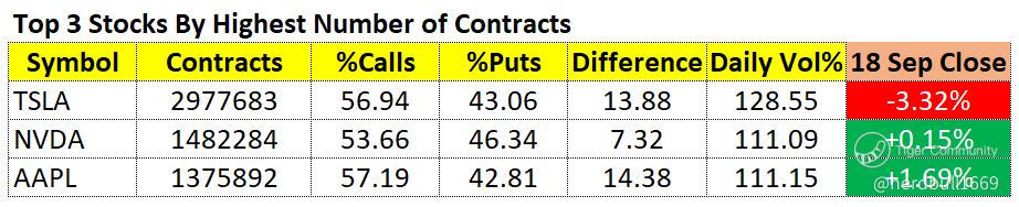 If we look at the highest number of contracts recorded for 18 Sep 2023, the top 3 stocks did not far too bad, only $Tesla Motors(TSLA)$ did not make an upside. But using number of contracts does not really tell much about the story.