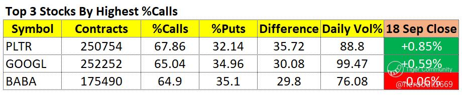 We should be looking at %Calls that are higher than Puts, for this category, $Palantir Technologies Inc.(PLTR)$ and Alphabet (GOOGL) did not have a remarkable increase but it is still positive though.