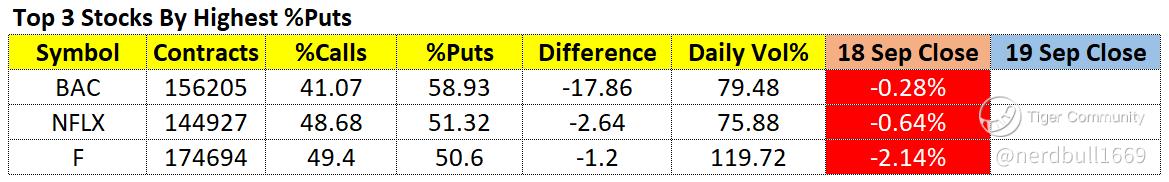 These 3 stocks seem to be inline with the %Puts higher than %Calls, it looks like they are on a bearish trend.