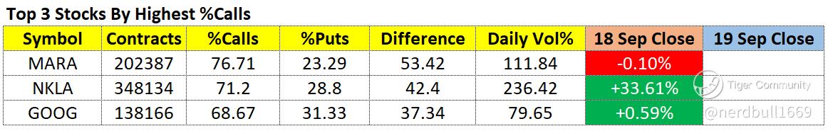$Nikola Corporation(NKLA)$ is another stock worth looking at, if you check out my earlier article, the %Puts was higher than %Calls and it went on a rally of more than 30% last night.