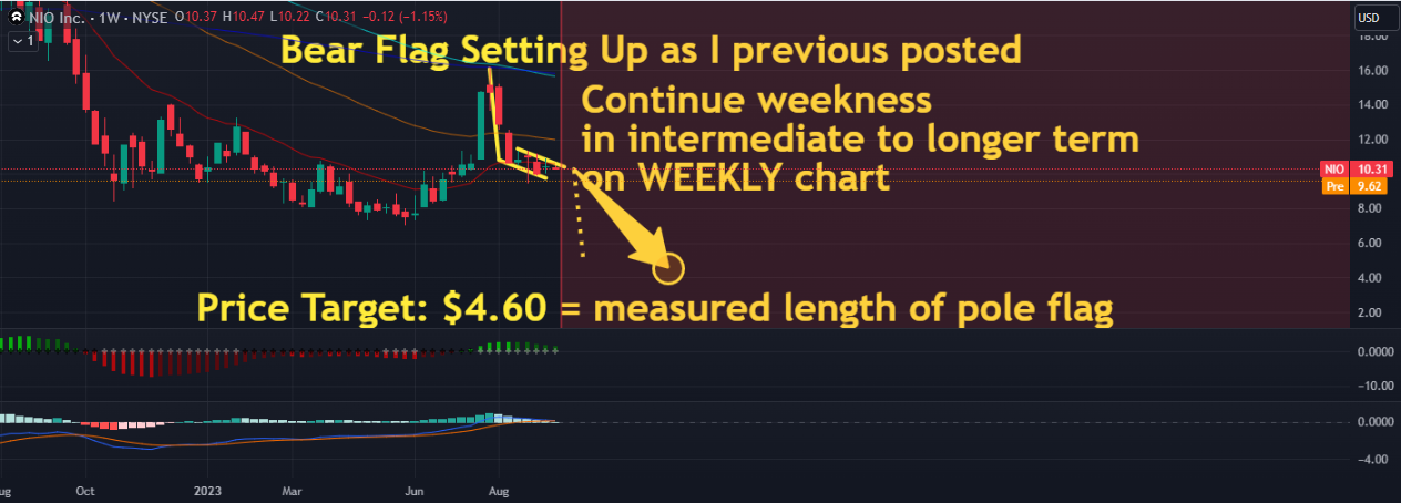 There looks to be a bear flag setting up. The flag is now setting up nicely on the Weekly Chart and is rock solid intact. The longer it solidifies the flag, the more likely it plays out. Watch for a imminent break, if cracked flag, measured move to the downside is around $4.60 which is also around a past support area.