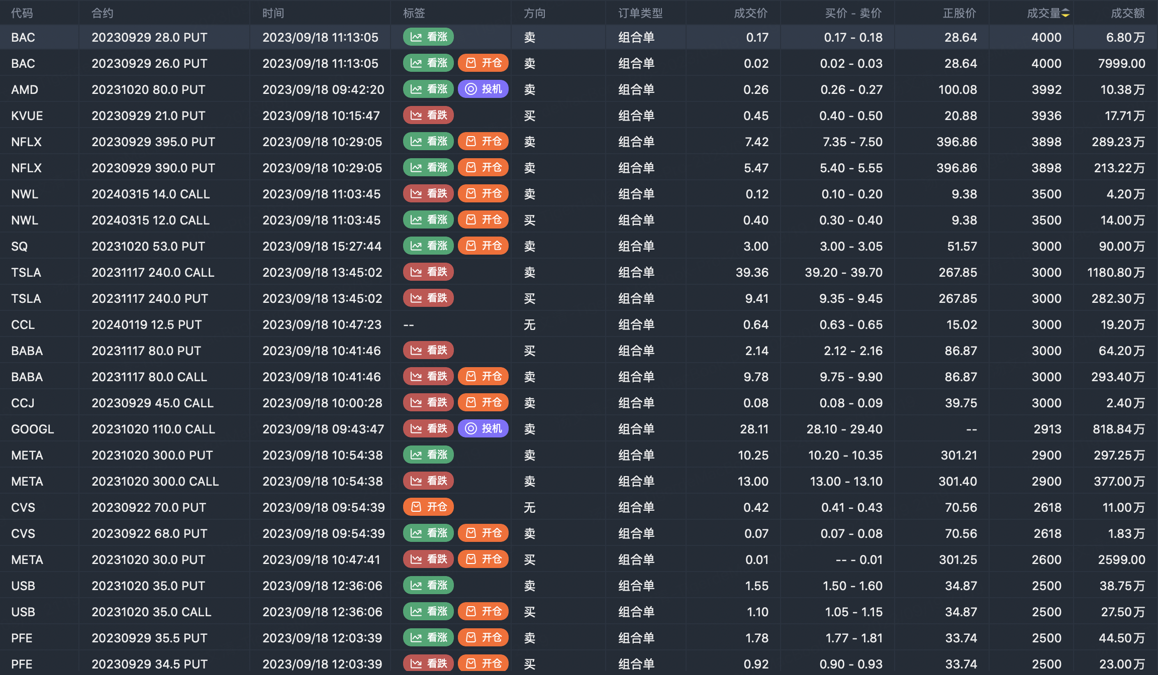 Note: This image data is from Tiger PC. This screening is a significant portfolio of options contracts in the market. Portfolio opening includes a variety of underlying trends, requiring traders to further master the basic knowledge of options for analysis and judgment.