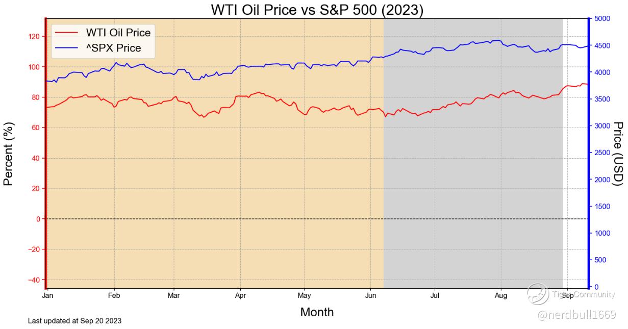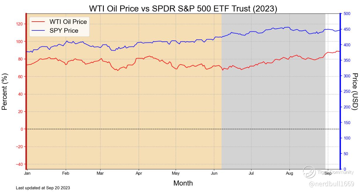 WTI Oil Price vs SPDR S&P 500 ETF Trust (SPY)