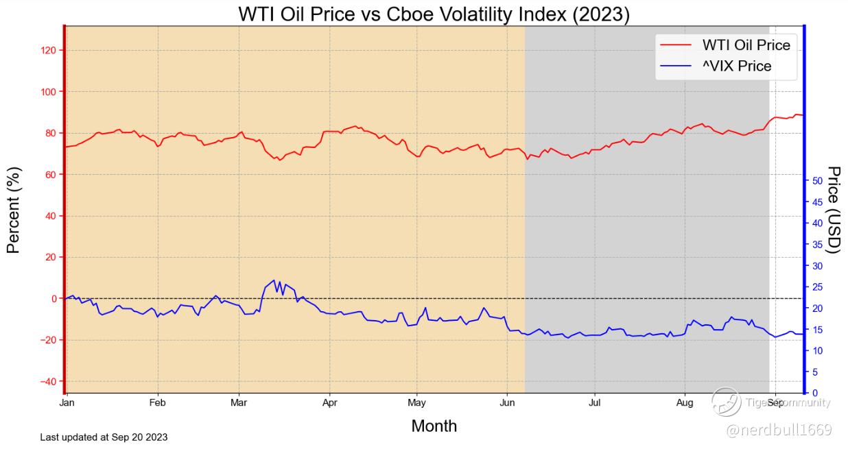 WTI Oil Price vs Cboe Volatility Index (VIX)