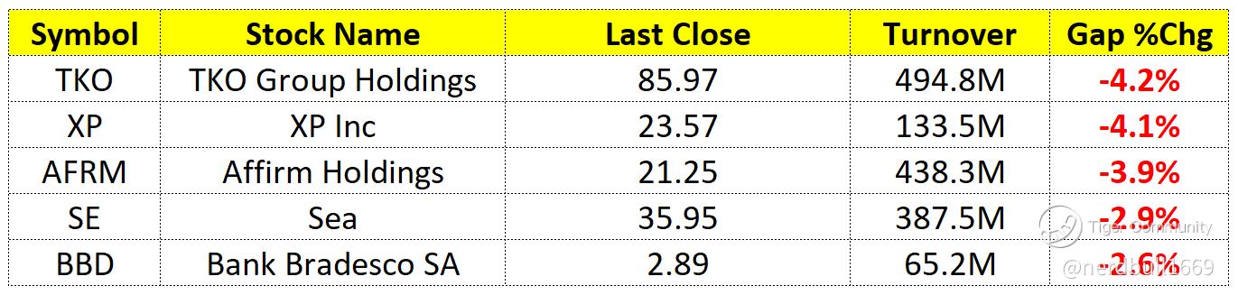 Below are the 5 stocks which have experiencing more than 2.5% of Gap down change. Will these stocks be experiencing a potential short upside rally tonight?
