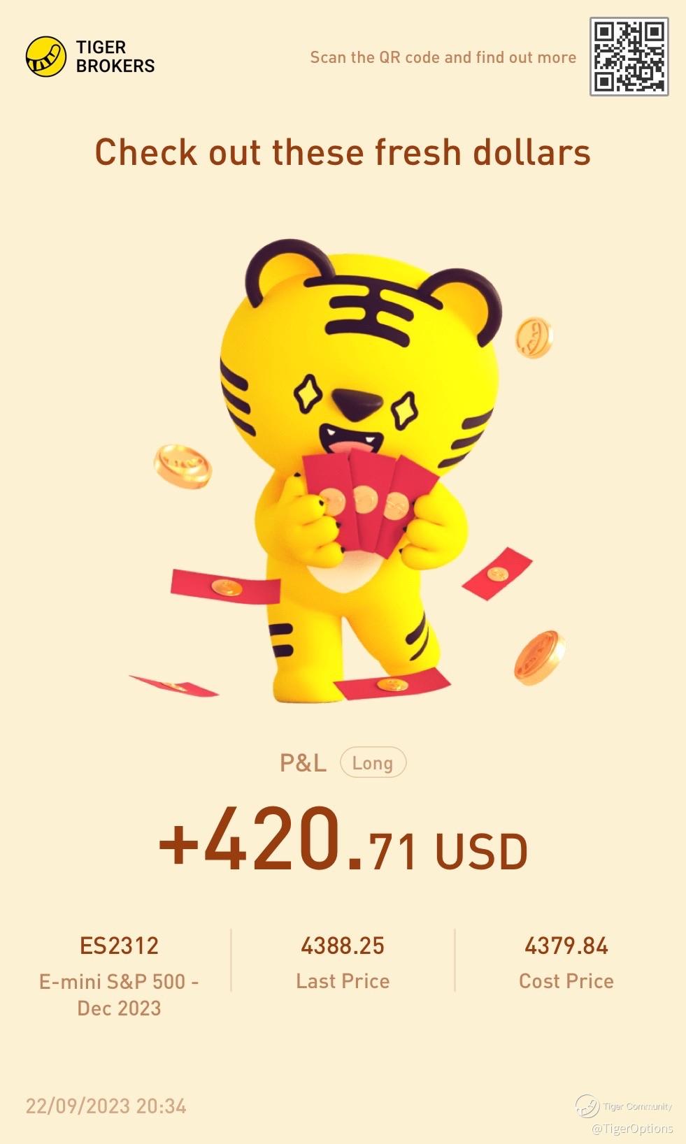 I've decided to take action and seize the opportunity. It's a choice between waiting for "one day" or making today "day one." I'm opting for the latter. Following the trade idea I previously shared for $E-mini S&P 500 - main 2312(ESmain)$ , I'm realizing my profits now.