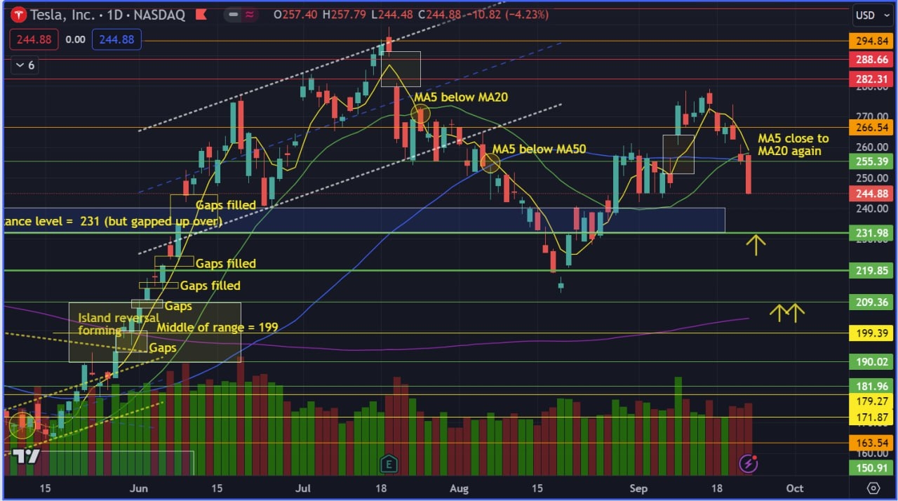 TSLA - Broke below key level and MA5 close to MA20 again!