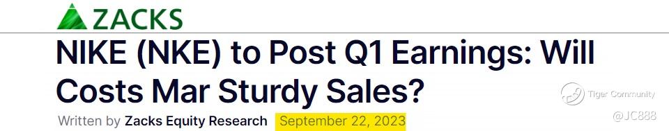 Nike will be reporting its Q1 2024 earnings on Thu, 28 Sep 2023.