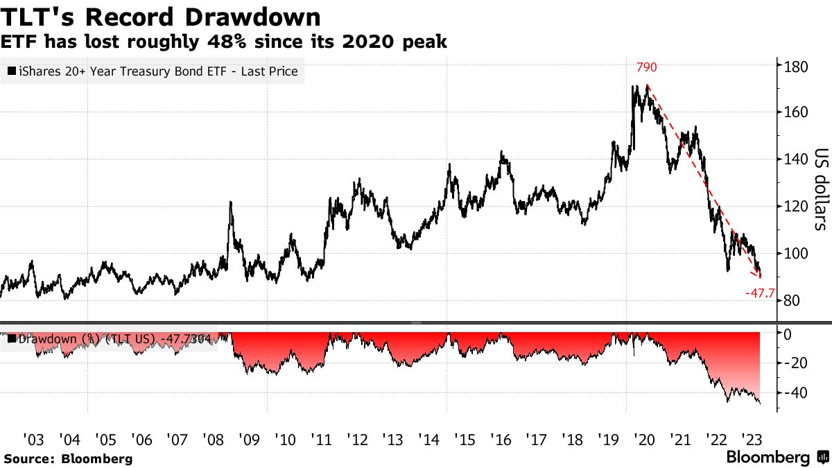 The largest long-dated bond ETF is suffering its biggest drawdown on record as the Federal Reserve’s higher-for-longer interest rates start to sting.