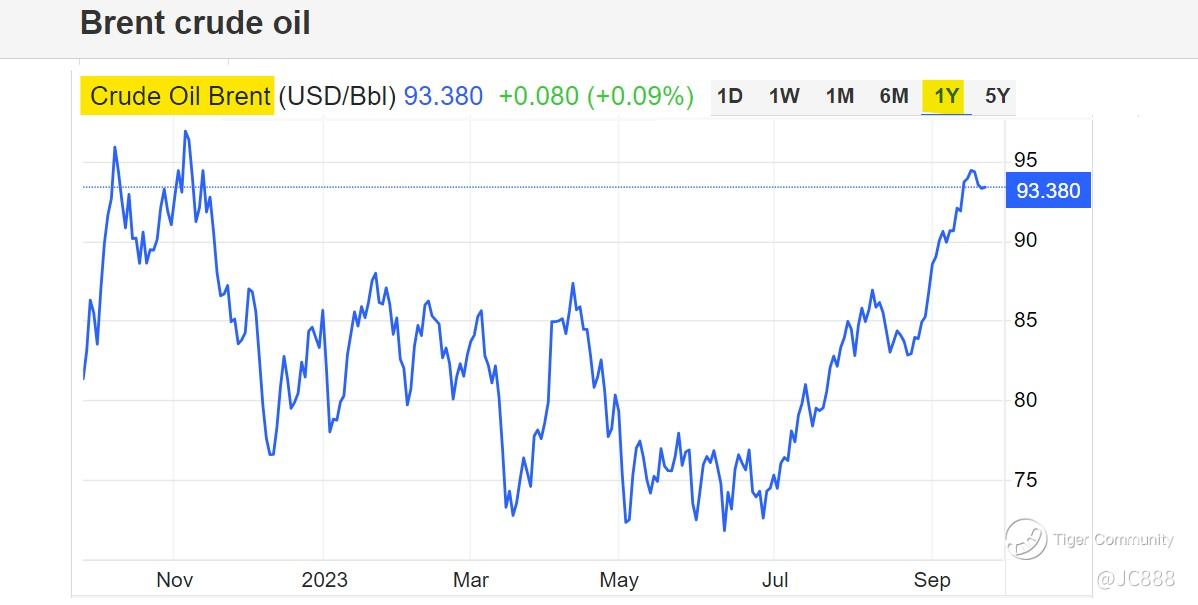 On Fri, 22 Sep 2023 — Brent prices were trading around $93.55.