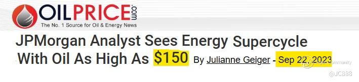 On Friday, 22 Sep 2023$JPMorgan Chase(JPM)$ Hd of Europe, Middle East & Africa (EMEA) Energy Equity Research, Christyan Malek, warned that recent Brent price surge could continue rising to $150 per barrel by 2026 (see below).