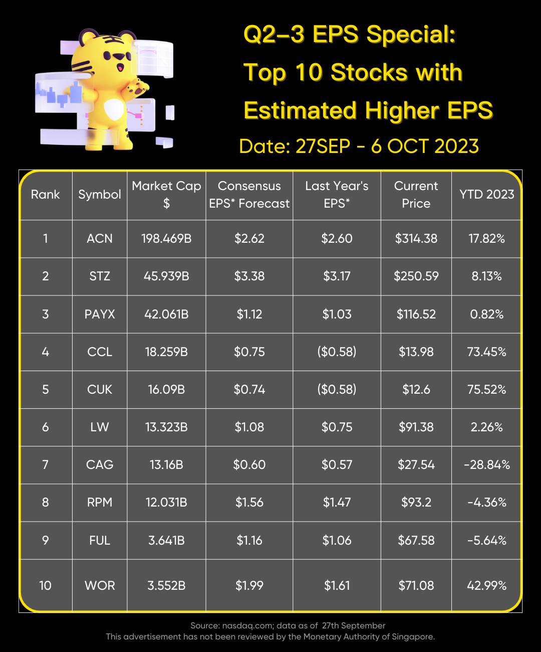 🎁Weekly Estimated Higher EPS List: ACN, STZ, PAYX, CCL, CUK…