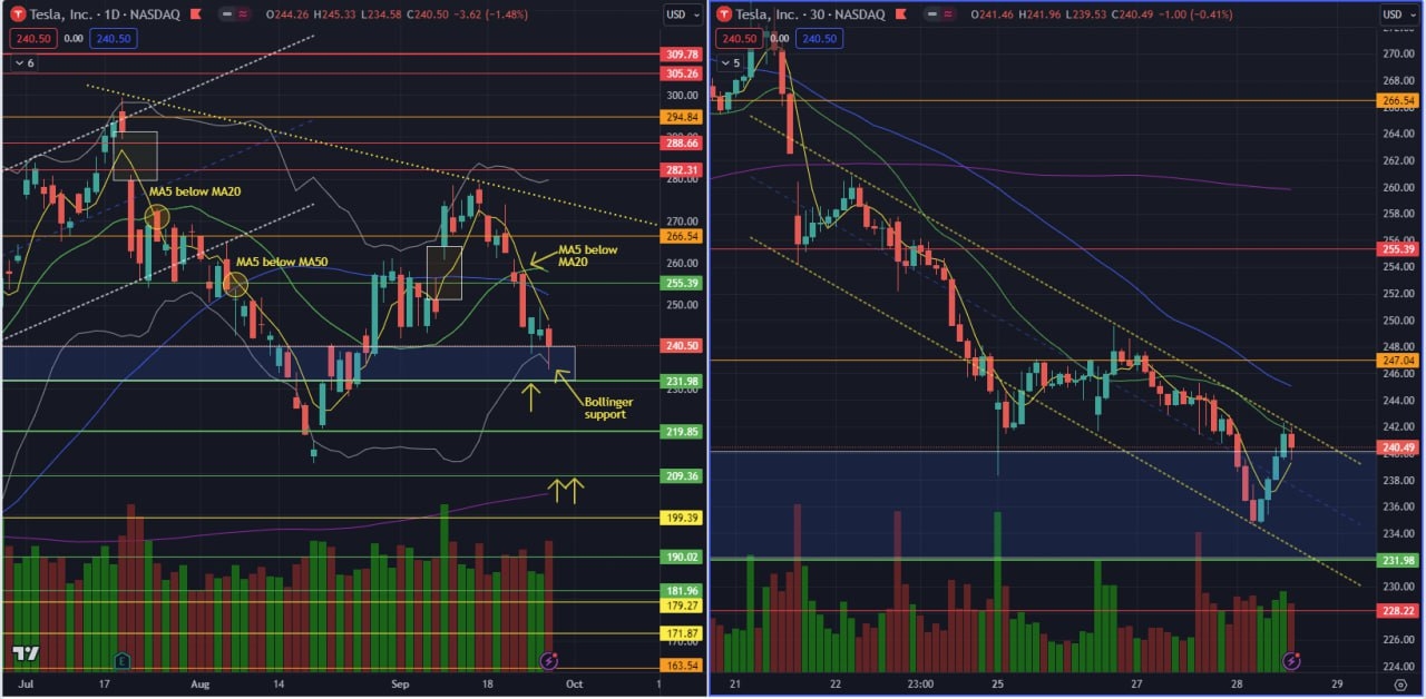 TSLA - Daily (left) 30mins (right)