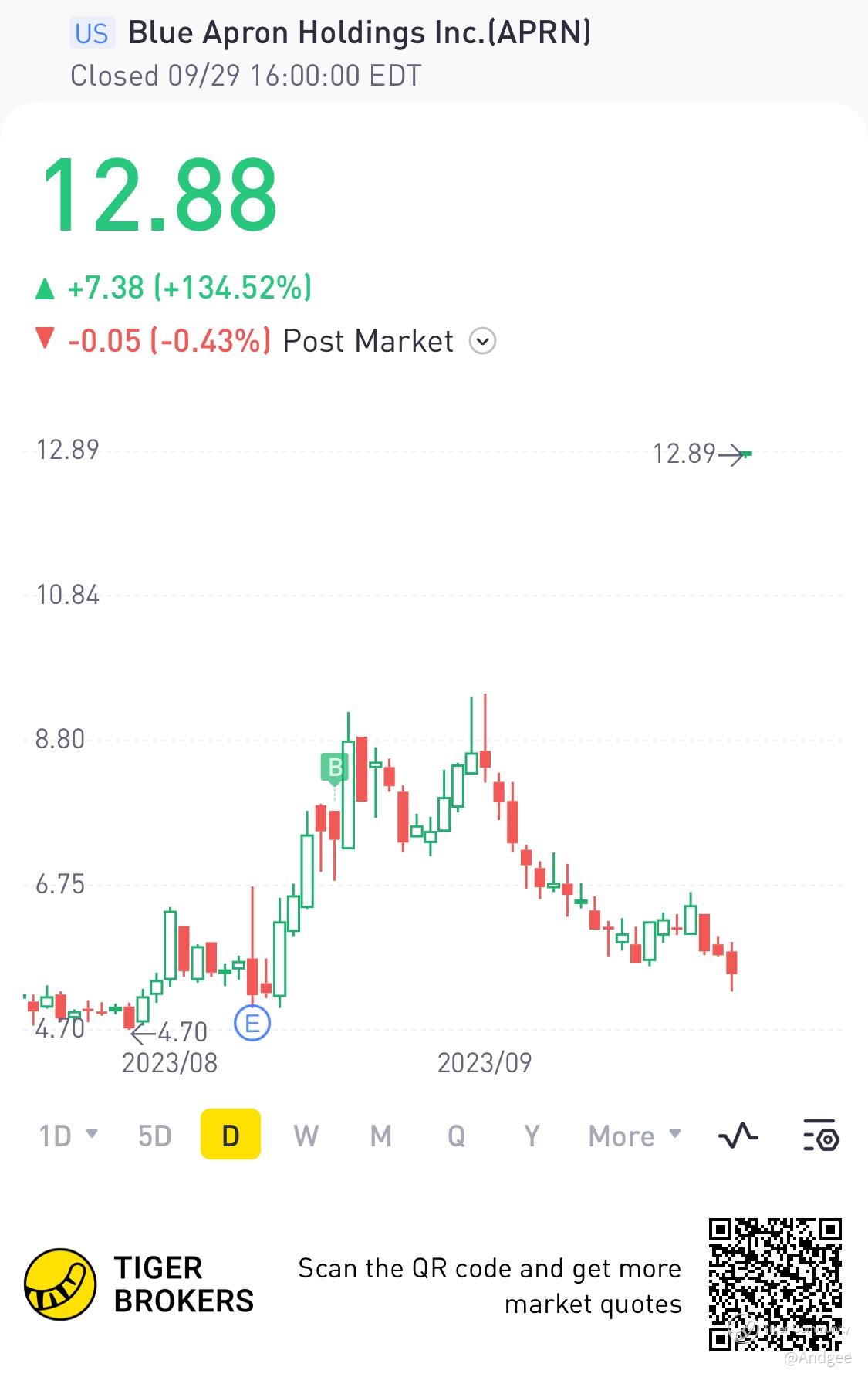$Blue Apron Holdings Inc.(APRN)$ is a monumental rise on the cards, or a reaction back? I'm holding off on the sell as this stock could go to $14 pivot point.