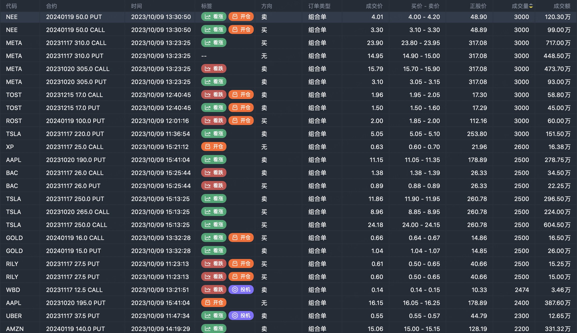 Note: This image data is from Tiger PC. This screening is a significant portfolio of options contracts in the market. Portfolio opening includes a variety of underlying trends, requiring traders to further master the basic knowledge of options for analysis and judgment.