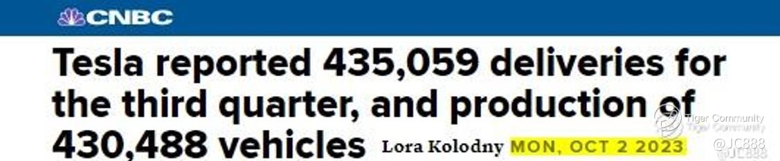 This is because on 02 Oct 2023 (see above), Tesla has reported its Q3 2023 delivery of 435,059 EVs.