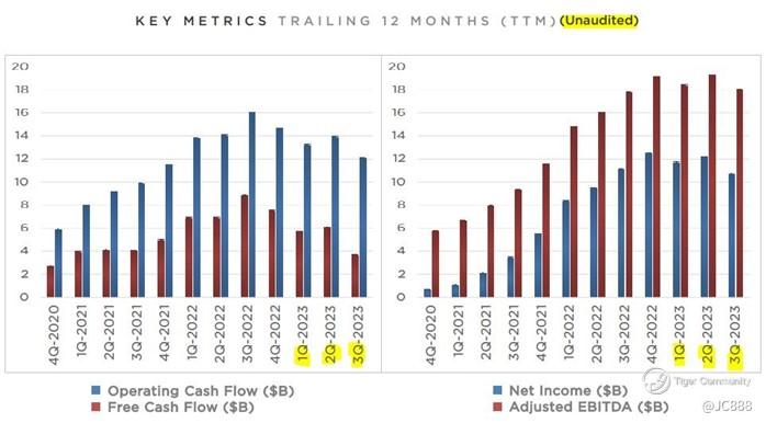 Looking at Tesla’s 12 months trailing key metrices of [1] Free cash flow and [2] Net income.