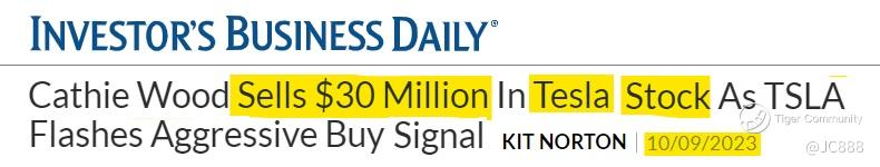 Ms Cathie Wood of ARK funds have sold $30 Millions worth of Tesla on the first week of October 2023 (see above).