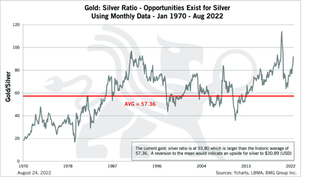 As a point of reference, the current Gold/Silver ratio is approximately 85 ($1,945 divided by $22.90 equals 85), signifying that it presently resides at the upper end of its historical range.