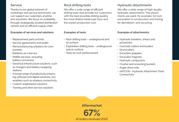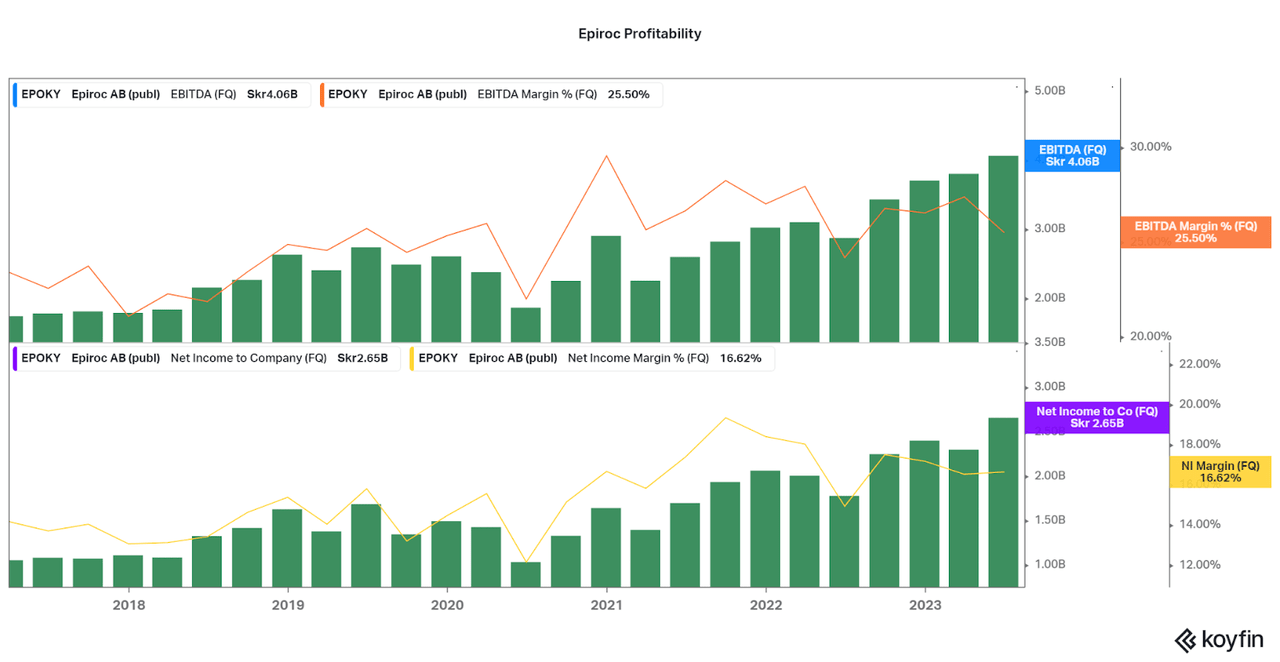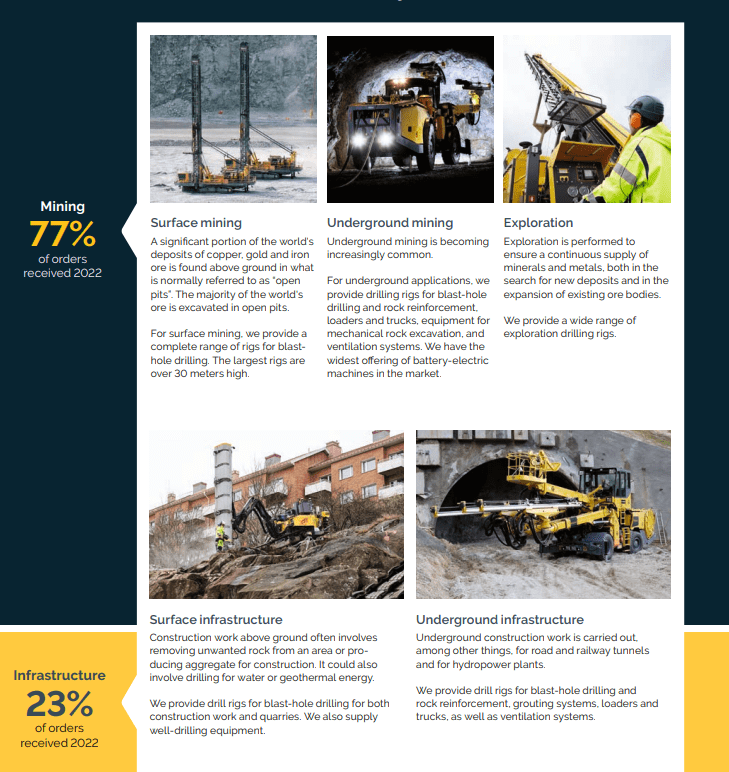First, Epiroc does design and sell vehicular construction and mining equipment, but their expertise is specialized in drilling and boring for mines and infrastructure projects, along with underground material handling. With a focus on selling attachments and providing services, margins are the highest of the group. This also signals top-tier intellectual property. Considering that many CAT equipment owners use Epiroc tools, there is limited competitive risk.