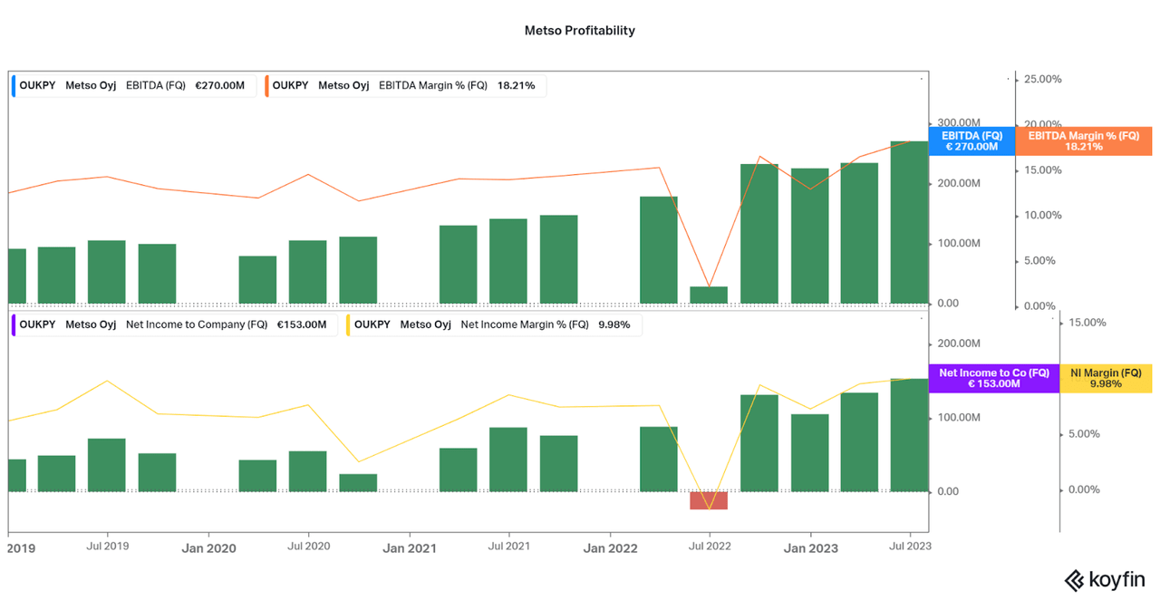 This contrasts with our ability to visualize CAT’s long-term ability to drive new highs in profit margins despite short periods of weakness. Profit generation is now at all-time highs, and the uptrend looks untarnished since a weak 2020/21. Uptrends rarely last though, and so I expect a downtrend over the coming quarters. For CAT, the balance between falling revenues while maintaining these high margins will certainly lead to a drawdown, but the extent of which remains unclear. As I discussed, there are headwinds in the profitable mining industry, but construction will remain a thorn in the side for some time. For this reason, I also believe that Metso will hold on to its profit margins longer over the coming years. Those interested in trading around can take note of these opportunities.