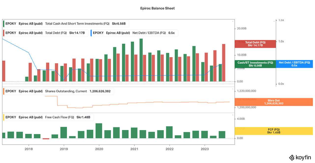 While share counts are not going up, if these two companies can replicate the buyback pattern of CAT then investors certainly want to acquire shares sooner rather than ever. For CAT, the ~2% reduction in shares outstanding per year helps boost EPS to 9.7%, even as revenues are flat over the same time period. However, buybacks may be withheld as the current share prices remain close to all-time highs. Instead, look for a strong balance sheet to be put to work making tactical moves, M&A included. In fact, a pick-up of Metso or Epiroc would not be out of the picture.