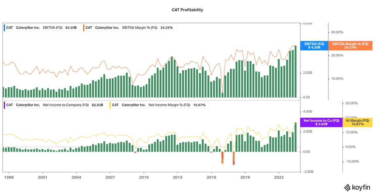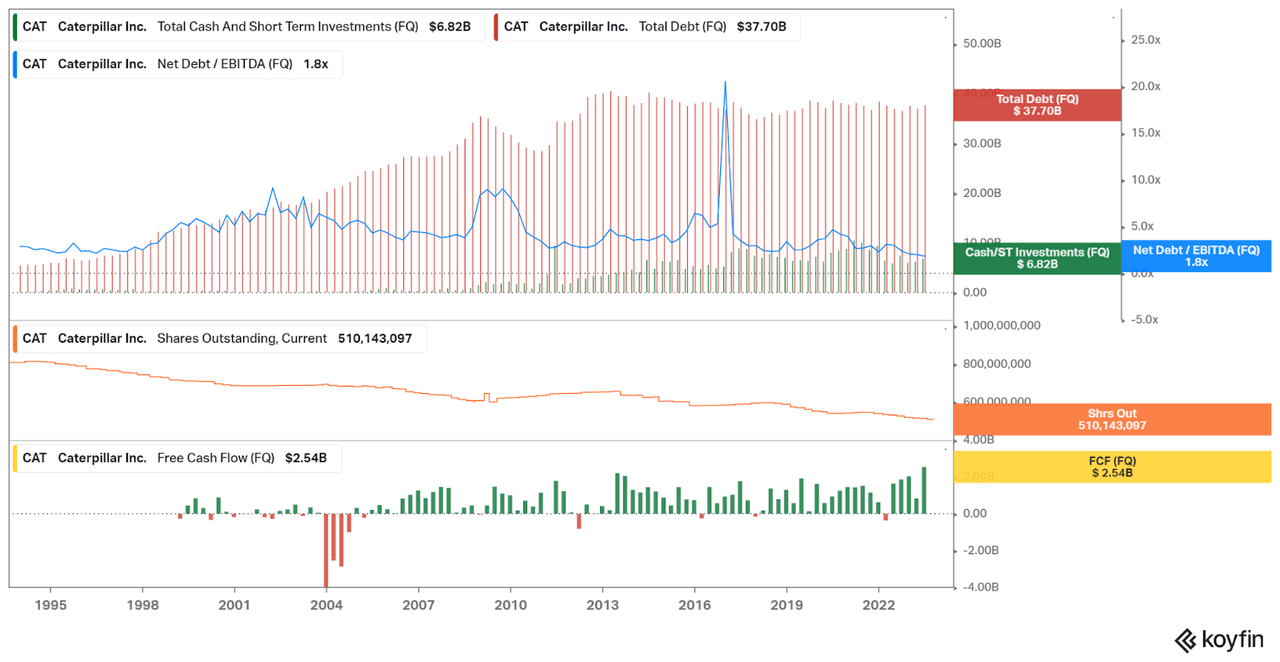 Caterpillar Inc. (NYSE:CAT) is an industrial conglomerate that leads across construction, mining, and heavy industry. The company has been fairly consistent over the past three decades despite broader industry cyclicality thanks to conservative financial practices. Kinda like that old outdoor cat that occasionally returns home when the weather is poor.