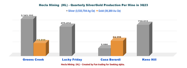 HL 3Q23 Production per Mine and per Metal (Fun Trading)