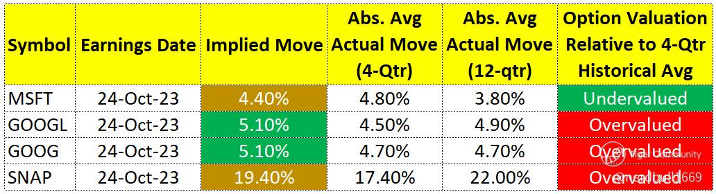 As we can see that the option valuation for Microsoft is undervalued compared to the other stocks which are releasing their earning result on 24 Oct 2023.