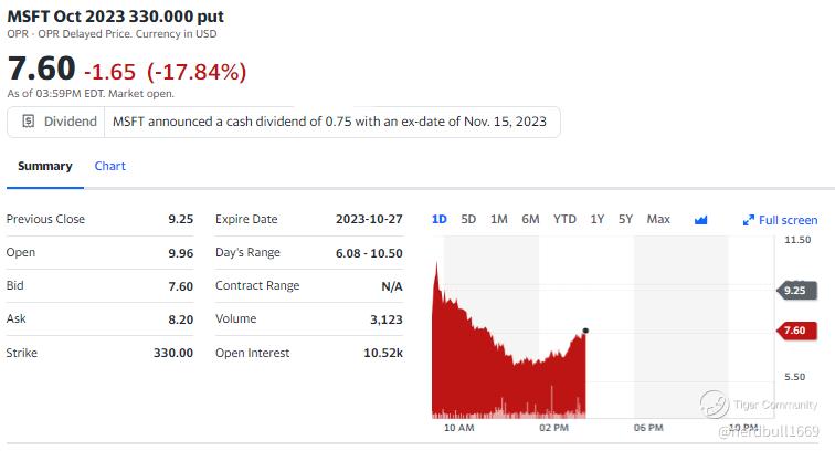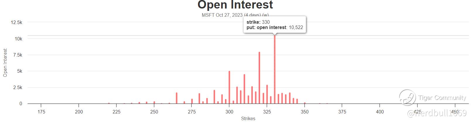 That means MSFT stock has to decline by 0% from 23 Oct (Monday)'s price of $329.32 before owners of the puts begin to make money.
